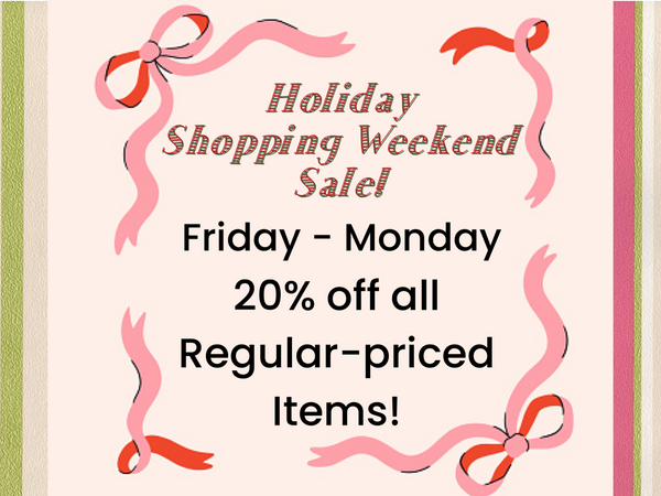 We've made it easy for you! Enjoy 20% off all regular priced items this weekend, from Black Friday (Nov 28) through Cyber Monday (Dec 1). Don't wait—this is your chance to snag the best deals and selections before they're gone! Below are some of items that will make fabulous gifts (or a little something for yourself).